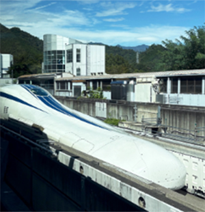 見学では、リニア中央新幹線プロジェクトの概要や超電導リニアの仕組みについて説明を受け、2025年7月より走行試験が開始された『L0 系改良型試験車(M10)』に試乗させていただきました。実験線は総延長42.8km、最急勾配 40‰、最小曲線半径 8,000m で構成されており、時速500kmでも新幹線同様の快適な乗り心地を体感しました。